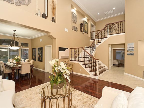 Welcome to Luxury Living in La Verne Heights, a Stunning 5-bedroom Home with an Expansive Lot! Discover elegance in this exquisite 5-bedroom, 3-bathroom home, nestled in the exclusive gated community of La Verne Heights. Boasting 3,300 square feet of living space on an impressive 18,189 square foot lot, this home offers both luxury and privacy. Step inside to find high ceilings, beautiful tile, wood flooring, and a striking wrought iron staircase. The primary suite is a serene retreat featuring double entry doors, a cozy sitting area with a fireplace, a spa-like bathroom with a soaking tub, a separate shower, and dual vanities. There are 4 bedrooms upstairs (1 is currently used as an office) & 1 bedroom downstairs. Outside, the meticulously manicured backyard is an entertainer?s dream. Relax in the saltwater Roman-style pool and spa, host summer barbecues at the built-in BBQ area with bar seating, or enjoy fresh produce from your raised garden beds. The spacious side yard is complemented by mature olive and fruit trees, creating a tranquil, shaded oasis. Plus, the long driveway and 3-car garage offer plenty of parking for family and guests. Located in a quiet cul-de-sac, this home offers access to community amenities, including tennis, basketball, and pickleball courts, all surrounded by beautifully maintained landscaping. Don?t miss the opportunity to live in this rare find with privacy and luxury in La Verne Heights.
