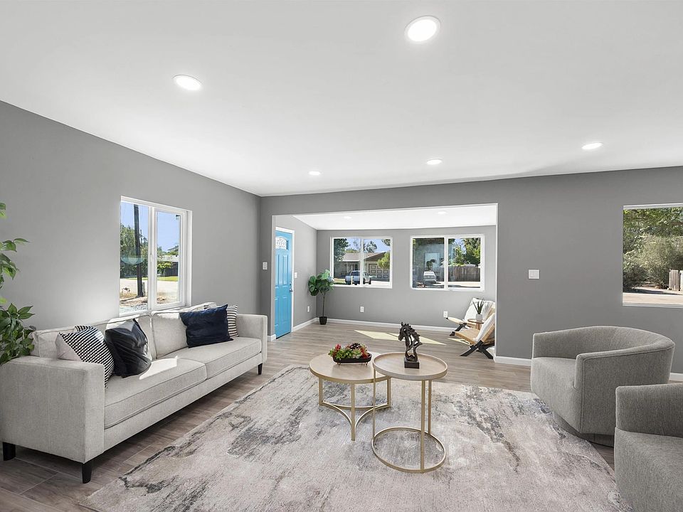 Welcome to your dream property in the heart of Ramona, an up-and-coming community with easy access to Hwy 67. This fully renovated estate sits on 2 flat, usable acres—a rare find with endless possibilities. Imagine creating your own private oasis with a sparkling pool and waterfall, building a barn, or even exploring the option to split the lot into two parcels (buyer to verify with city). The main residence offers 3 spacious bedrooms, 2 beautifully updated bathrooms, and a thoughtfully designed layout filled with natural light. The inviting sunroom-style entry sets the tone, while modern upgrades—from floors to roof and everything in between—ensure peace of mind and move-in ready comfort. Multiple electric cooling units keep the home comfortable year-round. Adding incredible value, a detached 1-bedroom, 1-bath ADU provides flexibility for guests, multi-generational living, or rental income. It features a cozy extra room between the bedroom and main living area that’s perfect as a lounge, vanity space, or home office. With space, style, and versatility, this property is the perfect blend of rural tranquility and modern living—all just minutes from town.