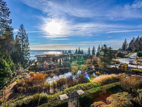 Luxury townhome living in West Vancouver’s prestigious British Properties. This private corner residence offers over 2,000 sq ft on two levels, with floor-to-ceiling windows that frame sweeping views from the city to Vancouver Island. Designed for quiet comfort and style, the home features a gourmet kitchen with high-end appliances, elegant stone finishes, and spacious living and dining areas. Both bedrooms include ensuites, while two private patios, a walk-in closet, ample storage, and a secure 2-car garage add to the convenience. A rare opportunity to own in The Properties at Twin Creek Place.