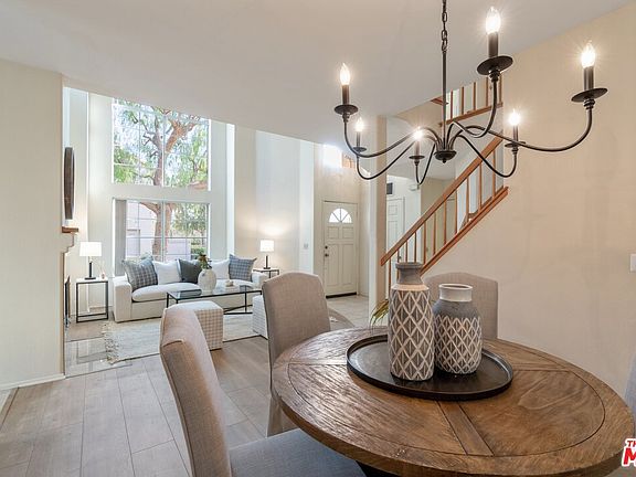 Don't miss the opportunity to own this rare, end unit townhome in the sought after California West Community of Chatsworth! Surrounded by beautiful mountain views, hiking trails and luxurious community amenities such as 2 heated pools and 2 spas, this well cared for home is a must see! Featuring new flooring downstairs, a desirable 3 bed, 3 bath floorplan and soaring vaulted ceilings with windows overlooking mountains and lush trees. Upstairs features 3 large bedrooms and laundry room with a massive master suite and walk in closet. Large 2 car garage with direct access to home with ample storage space. The HOA includes exterior maintenance, water, trash, sewer, earthquake insurance, common grounds maintenance, hiking trails, roving security at night, outdoor kitchen area and more!