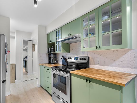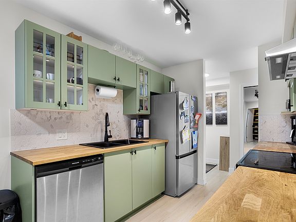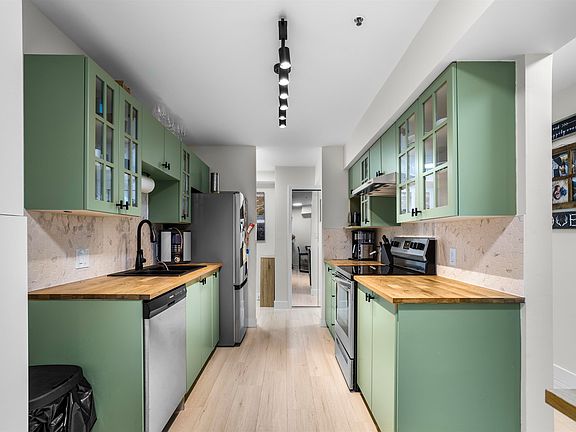 Move-In Ready, Major Upgrades Completed & Large-Breed Dog Friendly! Welcome to this bright and spacious corner unit 3-bed, 2-bath home offering over 1,200 sq.ft. of beautifully updated living space. Ideally located just 4 minutes from the West Coast Express, this home features a rare 200 sq.ft. private deck - perfect for outdoor living, entertaining, and enjoying time with your family and friends. Inside, you'll find a fully updated kitchen and bathrooms along with new laminate flooring throughout. Additional recent upgrades include baseboards, fresh paint, modern lighting, and updated appliances. Enjoy the convenience of in-suite laundry and storage, a cozy gas fireplace, and secure underground parking. Best of all, this home is large-breed dog friendly, making it a rare find.