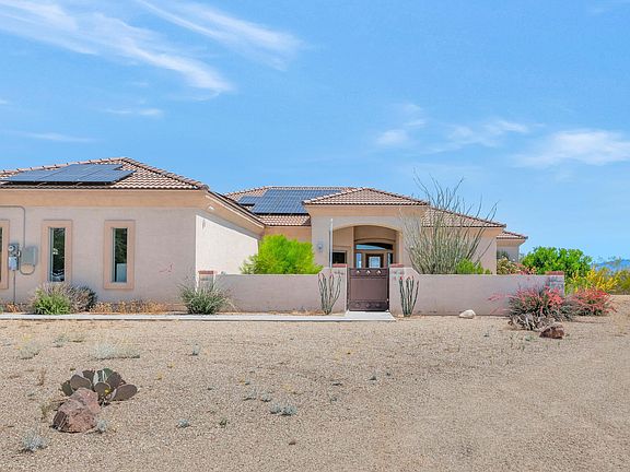 Move in ready horse property in the exclusive Vista Royale community in north Wickenburg! Exceptional opportunity to own this 3 bedroom, 3 bath, 2313 SF horse property that is Fully snake-fenced & Gated. Split floor plan w/2 Master Bedrooms, open concept family room & gourmet kitchen w/ updated stainless-steel appliances, granite counters & tons of cabinet space. Take in the beautiful mountain views from the front & back patio. Private country living on over 3 Acres, yet close enough to town w/ SOLAR for adding savings on your utilities! 78X48 Barn w/ AutoWaterers to the (6)12x16Stalls, a 12x16 Tack Shed, Covered Hay Stall, Double Mare Motel, approx, 100x200 TurnOut, & a 60' round pen! Then enjoy endless miles of gorgeous riding w/ State Land access from your backyard.