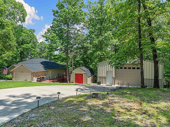 Tucked away on a private road is a 2,780 sqft home that checks all the boxes- 4 bedrooms, 3 baths, a community 12x28 boat slip, large shop and a seasonal lake view for complete lake living! Located on 1.64 acres, the property also features a wood-burning fireplace that can warm the entire home in case the power ever goes out! The eat-in kitchen features granite countertops, stainless steel appliances, freshly stripped & re-stained cabinets, & new hardware. The spacious primary suite includes a luxurious bathroom with a large walk-in shower & walk-in closet. Downstairs, you'll find a fully finished basement with a 2nd living area, bedroom & a bonus room with a wet bar, ideal for entertaining. Step outside to enjoy two expansive decks—1 upstairs & 1 downstairs. The downstairs deck includes a hot tub/firepit. 30x35 workshop with 12-ft garage door & built-in workbench provides excellent space for hobbies. 12x16 shed adds even more storage. Both house & shed -new roofs-2023. Added permanent lights on exterior feature.