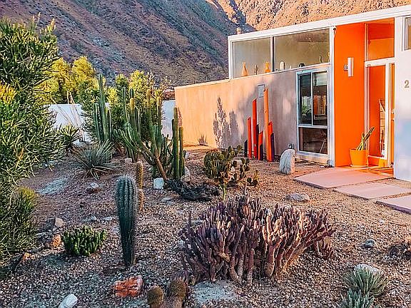 Enjoy your very own butterfly roof William Krisel designed home with spectacular mountain views. Located just minutes from the Palm Springs Uptown Design District, this 1959 verified William Krisel home is a mid century modern enthusiast's dream come true. Enjoy entertaining friends and family in the original kitchen with peg board cabinets, and painted concrete flooring throughout. This 3 bedroom and 1 bath compound has a new electronic gate which allows you and your guests to drive in to the driveway and carport.This mini compound, boasts a cactus garden throughout highlighting the rural tone along with amazing mountain views. Light, bright, peaceful and secluded mid century at it's best, this home has no HOAs and is on fee land (you own the land)! This home would be a prefect weekend getaway for the modernist wanting a home in Palm Springs.