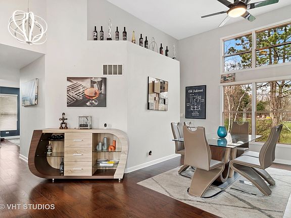 COME LIVE THE GOOD LIFE in this beautifully updated gem in the Lakeside neighborhood of Stonebridge. Reap the benefits of maintenance free living AND enjoy one of the largest, most secluded lots in the neighborhood. This home is situated at the end of a very quiet cul-de-sac with extra visitor parking right out front. Outdoor entertaining is a breeze on your newer (2021) GIGANTIC tear-off deck that overlooks the beautifully landscaped yard with mature trees. Come inside and be amazed by the home's wide open, versatile floor plan with absolutely NO wasted space! All the volume/vaulted ceilings give the home great dimension and all the newer oversized windows flood the home with natural light. The finished basement with full bath and huge rec area/media area adds tons of extra living and storage space to this already comfortable home. The current owner has been very busy making all kinds of updates to this home since 2021. Those updates include: Professionally painted cabinets in the kitchen and bathrooms; quartz counter tops and new faucet fixtures in the kitchen and secondary baths; all new stainless steel kitchen appliances (oven/range, microwave, dishwasher and refrigerator); LED lighting throughout most of the home; ceiling fans; bath fans; sliding glass door; 10 new windows in the upstairs and the garage; high end epoxy seal on the garage floor, laundry room floor and storage room floor; gas logs and stunning stone surround on the family room fireplace; movie screen, surround sound and components in the basement; sump pump and cover; replaced carpet on the stairs with hardwood. Newer (2021) asphalt driveway, too! Each and every update that the current owner made was done with quality and sustainability in mind. Other recent updates include newer engineered hardwood flooring the entire main level (January 2021). Newer HVAC with UV light filter system (2020). Updated spa-like primary bath with heated floors, heated towel bars, his n' her sinks, and a killer walk-in shower (2018). Newer water heater (2017). Newer cedar shake roof (2014 - resealed in 2022). Newer Hardy Board siding (2014). Literally all you need to do here is place your furniture and enjoy all that this vibrant community has to offer. Stonebridge is conveniently located near just about everything. It's less than 5 minutes from the Rte 59 train, I-88, and outstanding District 204 schools. Brooks Elementary and Granger Middle School are right in the subdivision and award winning Metea Valley High School is just down the road. Never mow your grass or shovel snow again because that's all done for you here! Don't hesitate with this one. It's going to go fast. Welcome home!