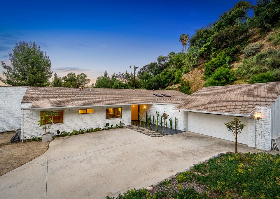 Welcome to the prestigious Highland Oaks neighborhood of Arcadia. A tranquil paradise, this incredible contemporary showcase retreat is part of the distinguished Arcadia School District. This beautiful home provides a peaceful oasis filled with natural light, gorgeous mountain and canyon views, and features a bright, open floor plan with 4 bedrooms plus a den and 3 bathrooms. Recently remodeled and situated on a stunning view lot, this single level home features 2,655 square feet living space on a generous 27,431 square foot lot. As you walk into this beautifully manicured home, you are welcomed by an elegant foyer. The spacious formal living room has vaulted ceilings, recessed lighting, beautiful tile floors, a custom designed fireplace, walls of glass accenting the views of the artfully terraced rear garden, patio, pool, water fountain and sweeping canyon and city light views. Adjacent is a large formal dining room spacious enough for large family gatherings and perfect for entertaining guests. The custom designed kitchen has been completely renovated with spacious vaulted ceilings and skylights, an oversized built-in refrigerator, top of the line appliances, Quartz countertops and large sliding glass doors flooding the rooms with natural light and overlooking the beautiful mountain views. The master bedroom is very large and bright, with sliding glass doors leading out to the pool and beautiful backyard. There are 3 additional spacious bedrooms as well as a den with a wet bar and views to the pool which could serve as a family room or a fifth bedroom. Additional features are newly upgraded plumbing and sewer, updated electrical, newer air conditioning and heat, tankless water heater and a new salt water pool and spa with a water feature. This home is perfect for entertaining, the rear garden is private and secluded. Truly the ultimate in sophisticated California indoor/outdoor living. This unique property offers serenity and relaxation yet is only a few minutes from hiking trails, the LA Arboretum, the Arcadia Race Track, shopping centers, restaurants and freeways.