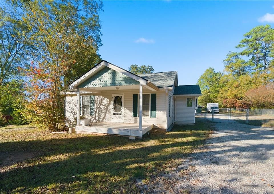 Charming Bungalow on Spacious Half-Acre Lot Welcome home to this cozy bungalow-style retreat featuring 1 bedroom, 1.5 baths, and an additional flex room that can easily serve as a second bedroom or office. The inviting family room, filled with natural light, creates the perfect space for relaxing evenings, while the eat-in dining area with a stone fireplace offers a warm and welcoming atmosphere for gatherings. Enjoy beautiful hardwood floors, a convenient mudroom, and updated bathrooms throughout. The home sits on a generous half-acre lot with an above-ground pool, a deck overlooking the backyard, and ample parking for guests. A detached garage with storage, plus an additional storage shed, provides abundant space for hobbies or equipment. Recent upgrades include a new HVAC system, water heater, and roof—offering peace of mind for years to come. The property is served by a private septic system and is ideally located near schools, shopping, interstates, and the Silver Comet Trail. This charming bungalow blends comfort, convenience, and character—perfect for a private getaway or a smart investment opportunity.