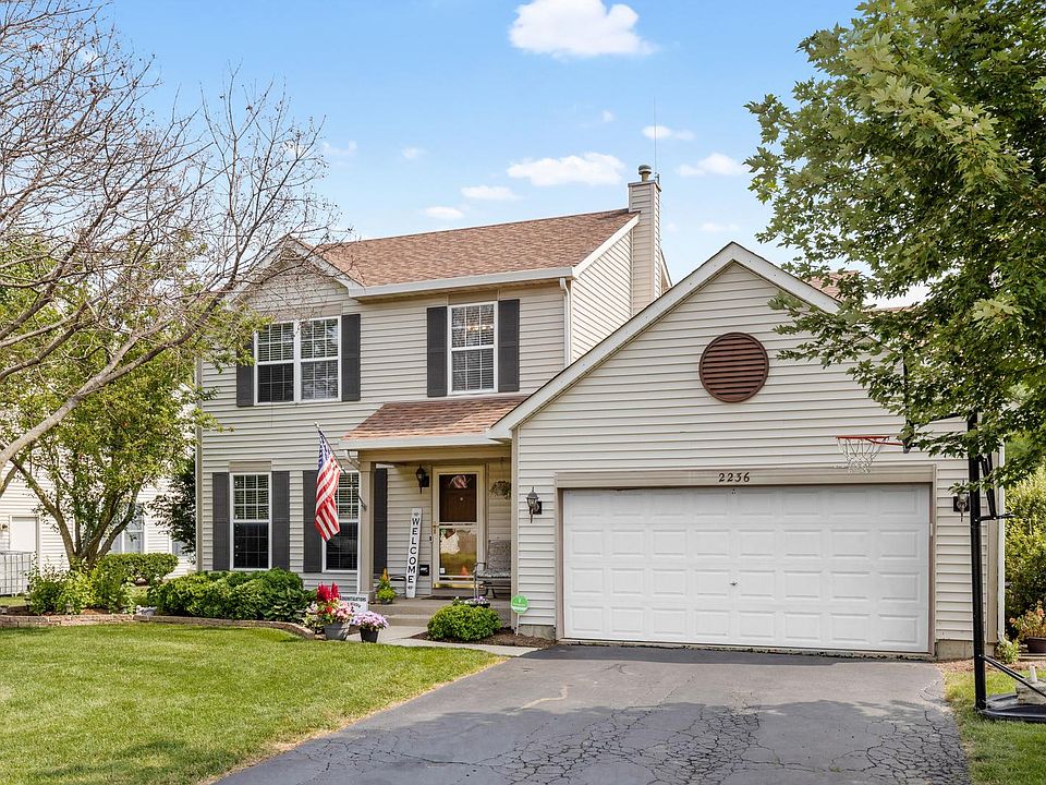 You will fall in love with this updated 4 bedroom home in Woodbridge South! Open floorplan with white kitchen leads into separate eating area that overlooks family room. Fireplace has been updated and new mantle added. First floor boasts custom closet doors and new patio door. All four bedrooms and family room have ceiling fans. Basement has been updated with new paint and carpet. Outside deck boards were replaced 2 years ago and above ground pool is very well-maintained. HVAC is less than 5 years old. Great South Elgin Schools! Close to Randall Rd - tons of shopping. Come and see!