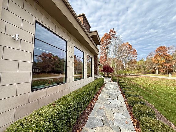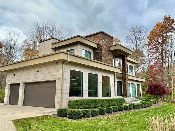 Experience the seamless fusion of California modernism and Miami modern in this unparalleled contemporary custom home, architecturally crafted by multi-award-winning visionary Phil Kean, drawing inspiration from the legendary Frank Lloyd Wright. Offering 6 bedrooms and 4 full baths, this one-of-a-kind masterpiece radiates sophistication and timeless style, serving as both a serene private oasis and an entertainer's dream. Floor-to-ceiling high-efficiency windows with automatic blinds frame breathtaking views, inviting the outdoors in and transforming winter snowfall into a magical snow globe spectacle from the comfort of your luxurious retreat. Walls of glass dissolve effortlessly, creating an uninterrupted flow to the expansive stone patio. Brazilian cherry hardwood harmonizes with Italian travertine and marble underfoot, warmed throughout by radiant heat. Limestone and slate stone define the exterior with striking accents, the slate extending seamlessly along the entire stairway wall. A commercial-grade roof ensures enduring performance. The sleek master suite boasts dual walk-in closets and a private terrace, while the spa-inspired master bathroom elevates everyday luxury. This extraordinary residence is an absolute must-see for discerning buyers. It's is a true gem located on 1.6 acres in Sturgeon Woods Subdivision and is a short walk to the 520 acre Midland City Forest. Check it out today!