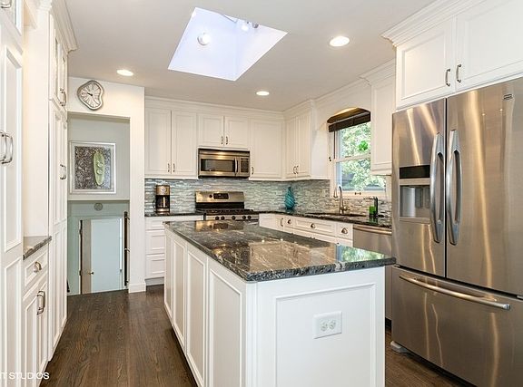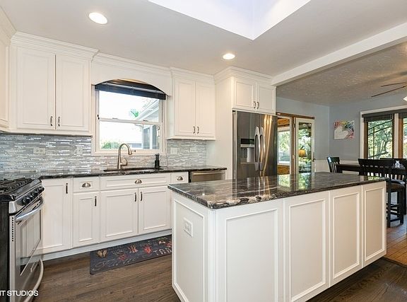 If you were HERE, you'd be home NOW! A truly unique property that will definitely "WOW" you with its updated kitchen w/island, skylight, granite, high end stainless appliances, and fantastic 1st floor family room addition (Heated and A/C) that leads to a totally spectacular private back yard with huge patio area, stamped concrete, full privacy fence and deck. 2+ car det. garage with 8 Ft overhead door and 9 ft high ceiling(Perfect for the potential contractors and car buffs).Also a one car concrete slab adjacent to the garage for additional off street parking. Huge storage shed attached to back of garage for all your lawn equipment needs (24L x 8W). Updated windows, LL bath renovated 2020. Also LL familyroom, huge concrete crawl for storage, utility room w/ large cedar closet that leads to backyard and patio area. Exterior has recently been freshly painted. This home has been meticulously maintained. Close to train, shopping and downtown Homewood. Home is much larger than it appears from the street.