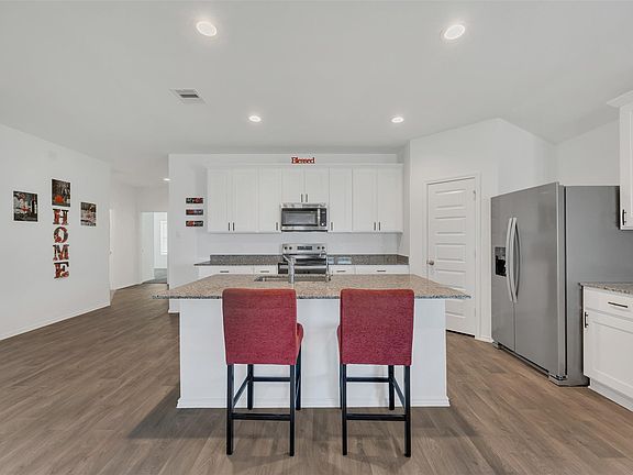 Welcome home to a stunning oasis that feels nearly brand new! Charming one-story gem boasts four spacious bedrooms, two beautifully designed baths, & convenient 2-car garage. Step through the inviting entryway with a handy coat closet, two cozy bedrooms tucked away alongside a bright bath. Fall in love with the heart of the home, a stylish kitchen that seamlessly combines function and elegance. Picture yourself gathering around the breakfast bar, surrounded by gorgeous granite countertops & gleaming white cabinets. The primary suite is a retreat, featuring a graceful sloped ceiling & attractive primary bath that exudes relaxation, complete with dual vanities, a shower, & spacious walk-in closet to meet your wardrobe needs. Step outside to the rear covered patio, where you can enjoy dining or a peaceful morning overlooking the backyard and no back neighbors with a lake view. This home isn’t just a place to live; it’s a wonderful sanctuary waiting for you to make it your own!