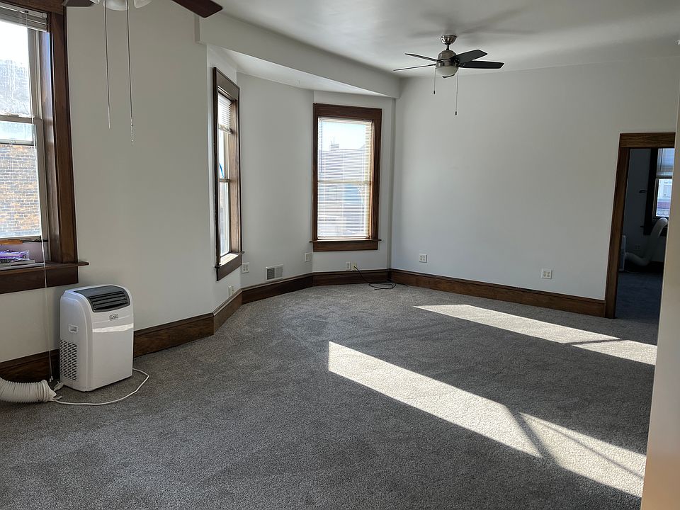 Large one bedroom with washer/dryer in unit. Above a quiet storefront. 1 off street parking space. Bright unit. Ample outlets for electronics in living room and bedroom.