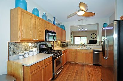 Great location & move in ready! Minutes from Geneva Commons, schools & park. 2-story, nobody above or below. Exceptionally maintained. Complete w/ newer stainless steel appliances, oak cabinets, custom natural stone back splash & wood blinds. Private, expanded, stamped concrete patio. Neutral color throughout (mostly fresh paint). Mounted tv in master stays. Xtra rm for storage. Plenty of closet space throughout.
