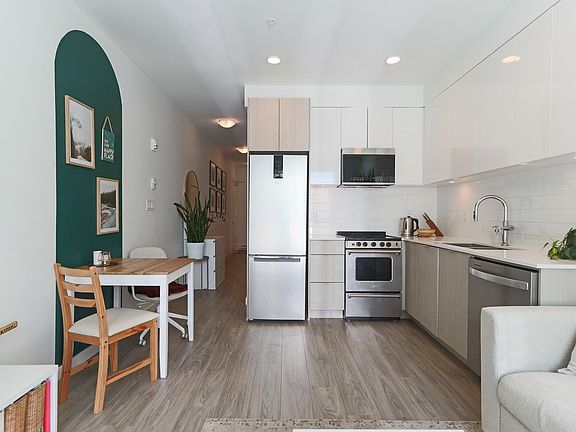 Experience the ultimate in urban living with this exceptional rental, perfectly situated in the heart of downtown Port Coquitlam's most walkable neighbourhood. This Jr. 1 bed and 1 bath boasts a sleek contemporary design you'll enjoy custom two-tone cabinetry, stainless whirlpool appliances, and elegant quartz countertops that elevate every moment at home. Enjoy the convenience of in-suite laundry and secured parking, as well as added amenities like a private meeting room, bike storage, and a spectacular rooftop patio with breathtaking views. This residence seamlessly blends style, comfort, and convenience, making it the ideal choice for those seeking a vibrant city lifestyle.