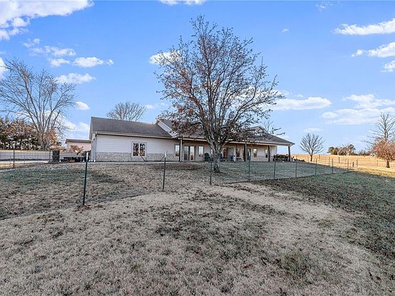 Horse Lover's Dream Property! 11.7 acres of sprawling land includes home, barn with stalls, tack room and lean-to, garden shed, horse arena, 3 feed lots with loafing sheds. Electric fencing throughout property! Wide open ranch plan. Half Earth contact home. Tall ceilings, spacious bedrooms, large master suite with separate door out onto covered patio and gorgeous view. Everything on one level. Kitchen features cherry wood kitchen cabinetry with dark granite tops. Beautiful windows and covered porch along front of home. Hard surface road to driveway. Very well built home! Move in ready! Easy attic access from garage provides tons of storage space. Don't miss this one!!