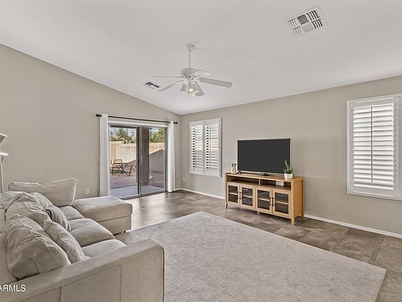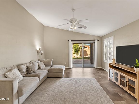 Sitting on a premium corner lot with ideal N/S exposure, this home offers a bright open layout with stylish plantation shutters throughout. The kitchen has been remodeled with upgraded cabinetry, expansive counter space & stainless appliances. The primary suite features abundant natural light, bay window & a large walk-in closet. Newer AC and Water heater! Step outside to your private backyard retreat with new low-maintenance turf (2024), a covered patio & an extended stone patio area surrounded by citrus trees. Enjoy resort-style amenities including golf, pool, tennis, pickleball, playgrounds & clubhouse which all just minutes from the Queen Creek Olive Mill, Schnepf Farms & local dining. The downtown QC area will soon be home to many restaurants including The Perch!