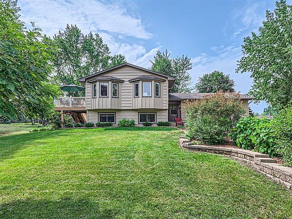 Welcome home to your personal oasis in Rogers! Nestled on a quiet cul-de-sac, you will love the park-like setting of the .75 acre lot with beautiful gardens and trees. This one owner home has been meticulously maintained and thoughtfully updated over time. The large entryway has a walk in closet for plenty of storage. Walk upstairs to the bright and sunny living room, dining room and updated kitchen with beautiful hardwood floors and stainless steel appliances. The maintenance free deck is accessed off the dining room and is perfect for grilling or just enjoying the view! Former 2 upper level bedrooms were made into one huge primary bedroom with a hot tub, 3 closets and walk through to the updated bath with tiled shower! Downstairs you will find a cozy family room with electric fireplace, 2 additional bedrooms, full bath, a home office/flex room and laundry room with front load washer and dryer. 12x8 Storage Shed. Schools are Hassan Elementary and Rogers Middle/High School