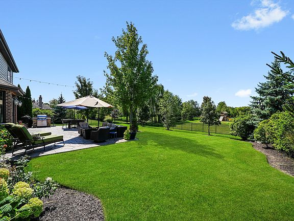 Meticulously maintained since new, this executive-style home is impressive from the moment you arrive. Nestled in a highly sought-after subdivision near an award-winning junior high school in a Blue Ribbon district, it combines elegance with everyday convenience. Curb appeal abounds with mature landscaping, a three-car garage, and a welcoming covered front porch. The backyard is truly an entertainer's paradise-fully fenced and featuring an oversized custom stamped-concrete patio, built-in grill station, and ample room for a future pool. Inside, the bright, open foyer sets the stage for the home's upscale finishes. A formal dining room with wainscoting (currently used as a second office), a private main-floor office, and a full bath offer flexibility for today's lifestyle. The gourmet kitchen is a chef's dream with upgraded appliances, expansive granite countertops, abundant cabinetry, and a walk-in pantry-flowing seamlessly into the cozy family room with fireplace. A custom mudroom adds both function and style. Upstairs, the master suite boasts a walk-in closet with custom organizers and a spa-inspired en suite bath. Three additional bedrooms and a convenient second-floor laundry (just steps from each bedroom) make family living effortless. The full basement, with 9-foot ceilings and a rough-in bath, provides over 1,500 sq. ft. ready for your creative vision. Designer lighting, custom window treatments, and upscale finishes throughout complete this stunning package. This home delivers exceptional value, comfort, and quality-ready to welcome its next owners!