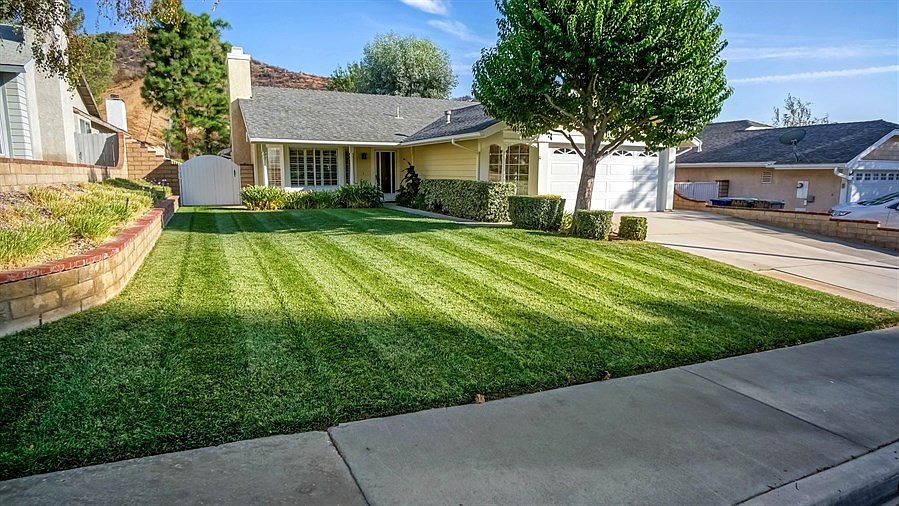 Darling single story home located in the Saugus area of Santa Clarita. This cozy 3 + 2, 1629 SQ FT home has it all. A formal living room with vaulted ceilings and a cozy fireplace with a custom mantle. Around the corner is a Fantastic open kitchen with granite counter tops and newer stainless steel appliances plus the refrigerator is included. A permitted added family room with a huge custom fireplace. The bricks were hand selected from 100 year old bricks making it a tremendous focal point. Off the family room is an entrance to the over sized master bedroom with mirrored wardrobe doors and an included Flat screen TV. Down the hall is the master and two good sized bedrooms all mirrored wardrobe doors. The garage is every mans dream!!! Epoxy floors tons of built in cabinets, and drop down ladder to access the attic area. Butcher block counters in the workshop area plus a small air compressor is included. A second refrigerator located in the garage is included as well oh and a flat screen TV too! Smooth ceilings with can lighting, newer vinyl dual pained windows, copper re-pipe, newer central heating and air with all new ducting throughout. The back yard is huge with a beautiful view of the mountains. The whole exterior of the home was just painted! With a vinyl like wood flooring and shutters almost throughout this home it all! It is a fantastic move in ready home that won't last. Better hurry and come see it today!