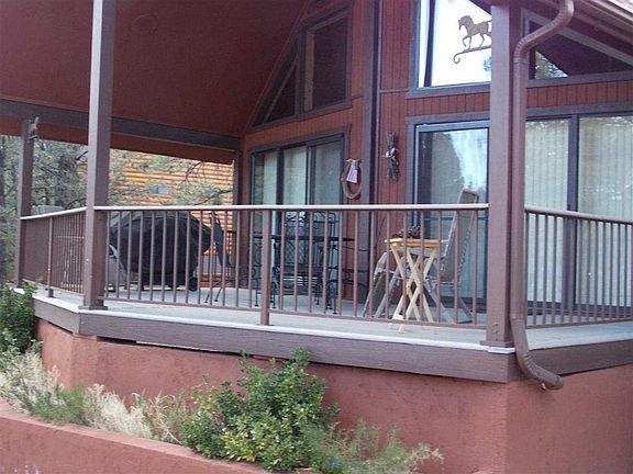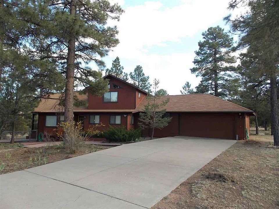 Ready to spend time in the cool mountain air and enjoy the beauty of this chalet cabin surrounded by mature Ponderosa pines. This cabin sits on the corner of a cul-de-sac and overlooks the greenbelt area from the spectacular covered deck. REMODELED and upgraded in 2015 gorgeous kitchen from the tile flooring, new dark hickory cabinets, chiseled edge granite counter tops, back splash, and lighting. Kitchen also has a breakfast bar and pantry. Great room with vaulted T&G ceiling, floor to ceiling rock fireplace, and wall of windows looking out to the deck area. Large dining room with bay window seat, and for those who just can't leave work, your own office. Master upstairs along with a nice sitting area for enjoying the views !! Baths have been upgraded as well and all