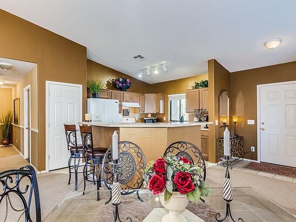 Looking for a cute, clean, FURNISHED, 3 car garage, single level home at a great price...then it's your lucky day!! Welcome to this charming 3 bedroom, 2 bath home in gated Jacob's Ranch. This lovely home has vaulted ceilings and a large great room open to the kitchen with breakfast bar island. Custom two tone paint throughout gives a warm and cozy feeling to your new home. Most of the furnishings are available, making this a great vacation or second home! Very hard to find a 3 car garage in this price range!! Gated community with heated pool, workout room, parks, open green space, and HOA INCLUDES: basic cable, internet and trash service!!! What a deal!! Come see this lovely home today!