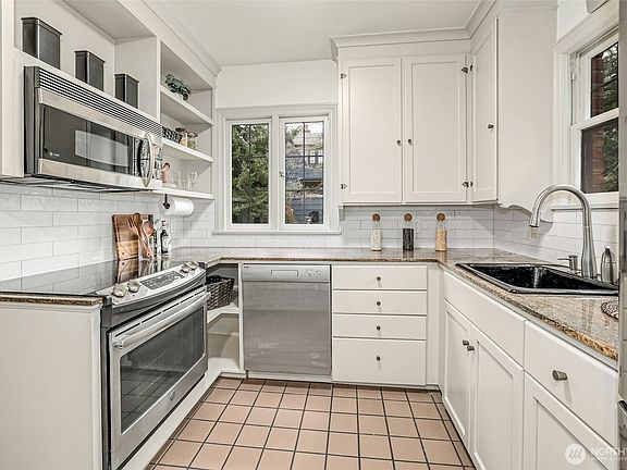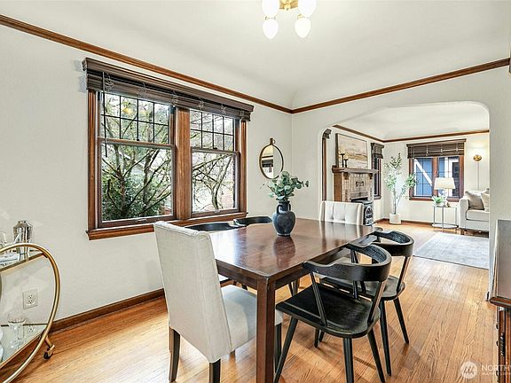 Nestled in Seattle's coveted Montlake neighborhood, this 1932 brick Tudor blends timeless elegance w/ modern comfort. Featuring a steeply pitched roof, charming gables, & rich brick façade, this home captures classic Tudor beauty. Inside, original hardwood floors & leaded glass windows preserve old-world charm, while updates enhance livability. The bright kitchen boasts new designer backsplash & SS appliances. The formal dining room & great room w/ gas fireplace create a warm ambience. The lower-level primary suite, w/ fireplace & French doors, opens to a private flagstone courtyard w/ lush greenery—perfect as a potential MIL. Upstairs, 2 spacious BRs share a remodeled bath. Close to the Arboretum & Lake WA. Experience timeless charm!