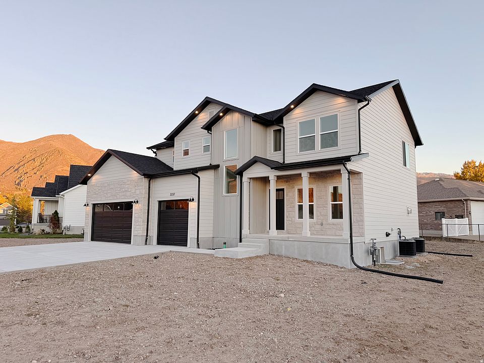Nearly Complete! (Interior photos shown are from a previously built home with the same floor plan; finishes will vary.) This new two-story offers 4 bedrooms, 2.5 baths, and a private office on a quiet cul-de-sac with quick access to Highway 89 and Weber Canyon. Snowbasin is just 20 minutes away, Pineview Reservoir 30, and Salt Lake City International Airport 35. The main floor features 9-foot ceilings, an open layout, and a gas fireplace that flows into a chef's kitchen with expansive counters, custom tile backsplash, under-cabinet lighting, a large island, 5-burner gas cooktop with vented hood, double oven, and walk-in pantry. Upstairs, the primary suite includes a freestanding tub, custom tile shower, and oversized walk-in closet. Three bedrooms, a spacious laundry, and a full bath complete the level. Dual high-efficiency HVAC systems, modern lighting, and a generous backyard with mountain views add comfort and style. Square footage from plans; buyers should verify. Photos may not reflect exact finishes or features.