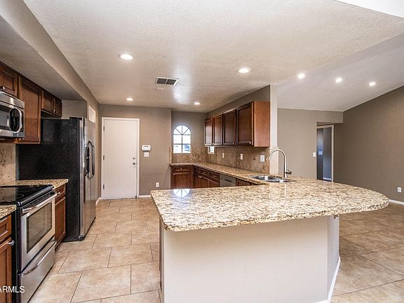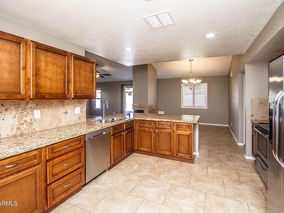 WOW, completely REMODELED from top to bottom! An amazing single-story 3 split bedroom, 2 bath Dobson Ranch stunner includes dramatic remodeled kitchen with stainless steel appliances, granite counter tops, stone backsplash, and breakfast bar. Both bathrooms completely remodeled including granite. Upgrades throughout including: newer dual-pane windows; wood-burning fireplace; no carpet throughout; updated lighting and ceiling fans; all appliances including refrigerator, washer, and dryer; and lots more! Private backyard with a covered patio, easy-care gravel, and paver seating area perfect for entertaining. All of this plus the many Dobson Ranch amenities of nearby parks & lakes, golf, community pools and tennis. Simply an immaculate home in award-winning Dobson Ranch!