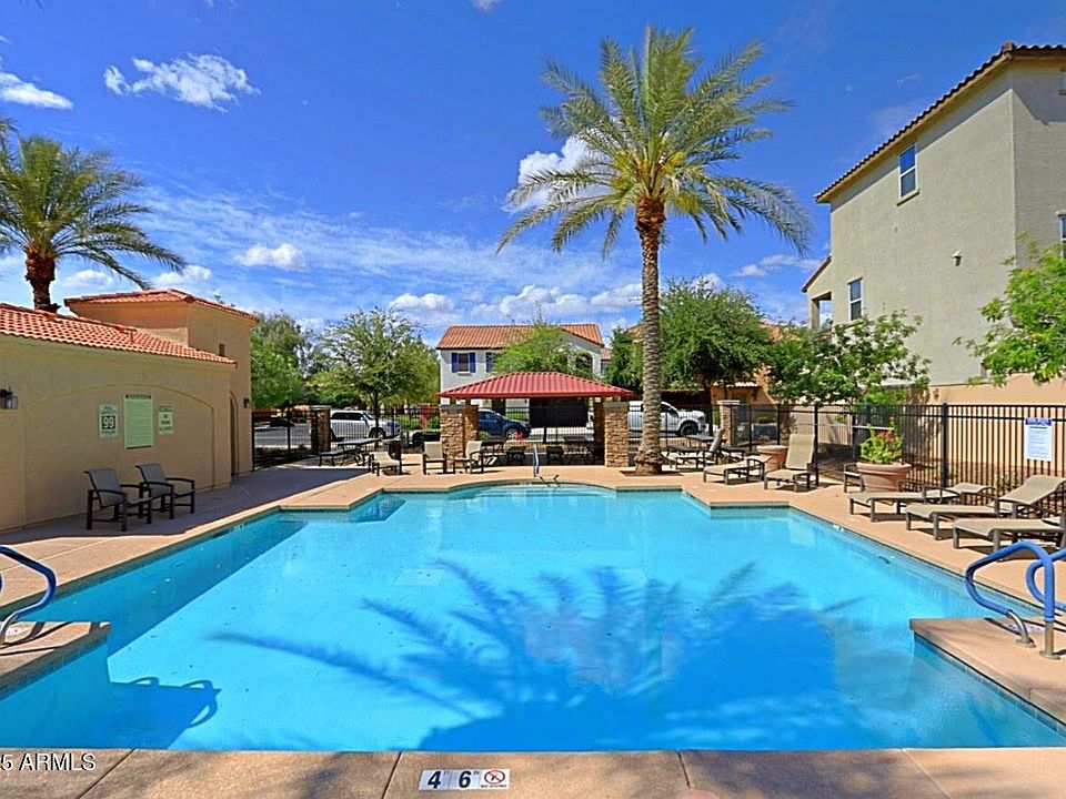 Located in the desirable Solana Town Center at Fincher Fields, this 3 bed/2.5 bath, open-concept home offers a bright & airy layout with plenty of natural light and upgraded tile plank flooring. The spacious upstairs loft provides flexible living—perfect for an extra living area, a home office or media room. The roomy primary suite features two closets and a large en suite bath. Just minutes from San Tan Village Mall and Verde at Cooley Station, enjoy easy access to dining, shopping, and entertainment. The community includes lush greenspace, a playground, and a sparkling pool—ideal for Arizona living!
