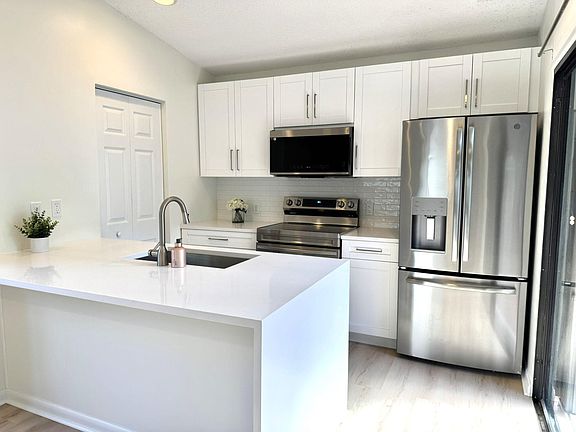Newly renovated in the heart of Central Boca. You will love this corner villa at Pineapple Walk. Open kitchen with quartz countertops with waterfall edge, soft close shaker cabinets, & subway tile backsplash. Two master bedrooms with walk in closets. It has a new roof 2023, & the exterior just painted. No Assessments. Live worry free & lounge by the lush tropical community pool or in one of your own two patios. Walking distance to shopping, restaurants, & houses of worship. Let's not forget this is an A-Rated school district.