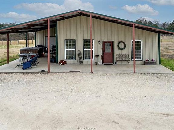 Are you ready to own your own piece of heaven? This turnkey country property is ready for a new owner with or without livestock. This custom built barndominium features an 1800sqft open living space with 3 bedrooms, 2 baths, and 450sqft attached shop/garage. Concrete floors, beautiful granite countertops, open kitchen and windows at every turn give this home a panoramic view of the almost 6 acres of pasture, riding arena and barn. 1000sqft of covered porch allows you to sit out and enjoy your morning coffee or sunsets gazing at the pastures behind you. Great 50x80 barn with 2 - 12x12 stalls and a 50x60 indoor riding arena will make any horse lover swoon. Stalls are equipped with fans, fly misters, and automatic waters. Attached to the barn is a parking spot for your 5th wheel travel trailer or Horse trailer with living quarters. Located behind the house you will have a 48x24 tractor barn with 3 open bays and an enclosed 12x24 garage. 15 minutes to College Station or 15 minutes to Navasota. This property is located in Brazos County and holds a Navasota address. This mini ranch has everything you need and you are literally minutes from everything. Make your appointment today to see this beauty!