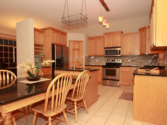 Serene private lot. Quaint front porch,lrg deck & patio. Great rm boasts flr-to-ceiling gas fireplace & tiered granite wet bar.Kitchen pantry,island w/prep sink,stainls stl appl. Luxurious mst bath. Dream garage! Walk-out. Potential 620 sqft to finish!!