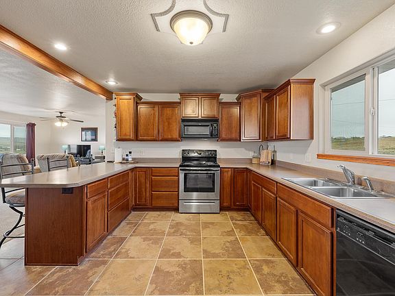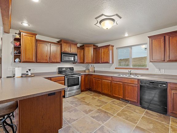 Listed by Pete Jensen, KWBH, 605-484-6713. **MOTIVATED SELLERS!** Welcome home to 22376 Bunco Ct- a spacious raised ranch style home with incredible views and a fully finished walkout lower level! *Bring your horses to this sprawling 3.12 acre lot with flat usable space and a gently sloping hillside *The main level has a great open concept, and offers a desirable layout with three bedrooms on one level *The large kitchen is the heart of this home- with solid cherry cabinetry, Corian countertops, black and stainless steel appliances, and a pantry closet for storage *Breakfast bar seating for convenient meals, plus a dining area for more formal meals *Large living room with picture window showcasing beautiful views of the hills to the west *Main level laundry room just off the kitchen *Spacious master suite on one end of the home, with a large bedroom with vaulted ceilings and beautiful views, a walk in closet and ensuite bathroom *2 additional bedrooms on this level, including a guest suite with its own ensuite bathroom *Walkout lower level has a sizable family room with 8' ceilings and large windows, 1 bedroom, 1 full bathroom and a mechanical room with 2nd set of laundry hookups *Drive under 2-car garage is fully finished and has extra wide doors *Raised back deck to relax with friends or family, that overlooks your private praire hillside. A peaceful home where your horses can roam? This is your chance- call today to make this great property yours!