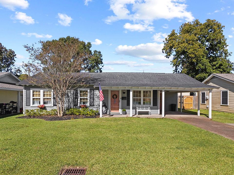 This adorable 3 bedroom, 1 bathroom home has been updated with thoughtful details and timeless charm. Step into a cozy space with real hardwood floors, fresh paint, new light fixtures and so much more. You will love the open concept living room and kitchen. There is also an indoor laundry area that has a flex space next to it that could be used as an office, den or dining room. The backyard offers a spacious covered patio with a beautiful fireplace perfect for enjoying time with family and friends. The backyard is fully fenced and also has a handy chain link divider in the middle. The storage building is conveniently equipped with electricity and a window unit. This home is a must see and is located in the PNG school district.