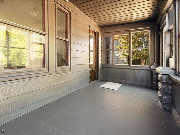 doors throughout, adding warmth and personality. The enclosed front porch offers a peaceful spot to relax year-round.