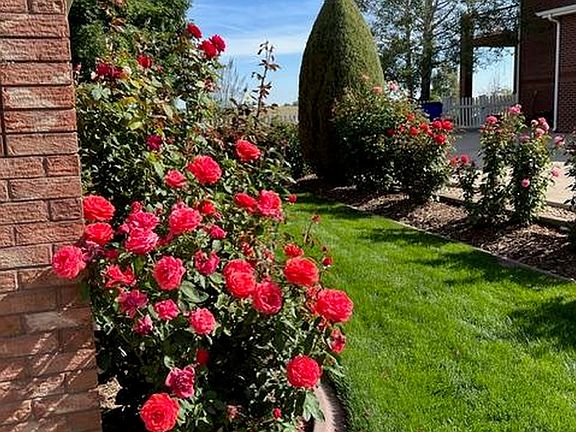 Manicured yardCovered patioNearly half an acreInviting living spacesIndividual pvc lines