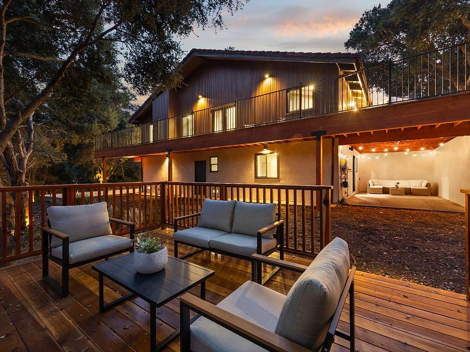 Nestled in the peaceful hills of Ojai, 2238 Los Encinos Road offers a perfect blend of modern updates and timeless design on a spacious 0.52-acre lot. This two-story, fully updated residence spans 1,822sq. ft. upstairs with a 360sq. ft studio downstairs, offering 3 bedrooms and 2.5 baths. As you step inside, the vaulted ceilings with exposed beams create a striking sense of openness, drawing the eye to the surrounding treetops. The living room, centered around a stone fireplace, is bathed in natural light, with an inviting atmosphere ideal for both relaxation and entertaining.Designed with a chef's sensibility, the kitchen features top-of-the-line appliances, abundant counter space, and a smart layout that makes cooking and hosting effortless. The seamless flow from indoors to outdoors is one of the home's defining features. A massive wraparound deck provides a tranquil space for outdoor living, where tree-filled views set the backdrop for any gathering. The covered patio offers a more intimate setting for al fresco dining or enjoying your morning coffee amidst nature.With its combination of serene surroundings and modern conveniences, this home offers the best of Ojai living. Located just minutes from local shops, restaurants, and outdoor recreation, it provides a quiet retreat without sacrificing proximity to everything the area has to offera perfect sanctuary for those seeking a harmonious blend of comfort and style.