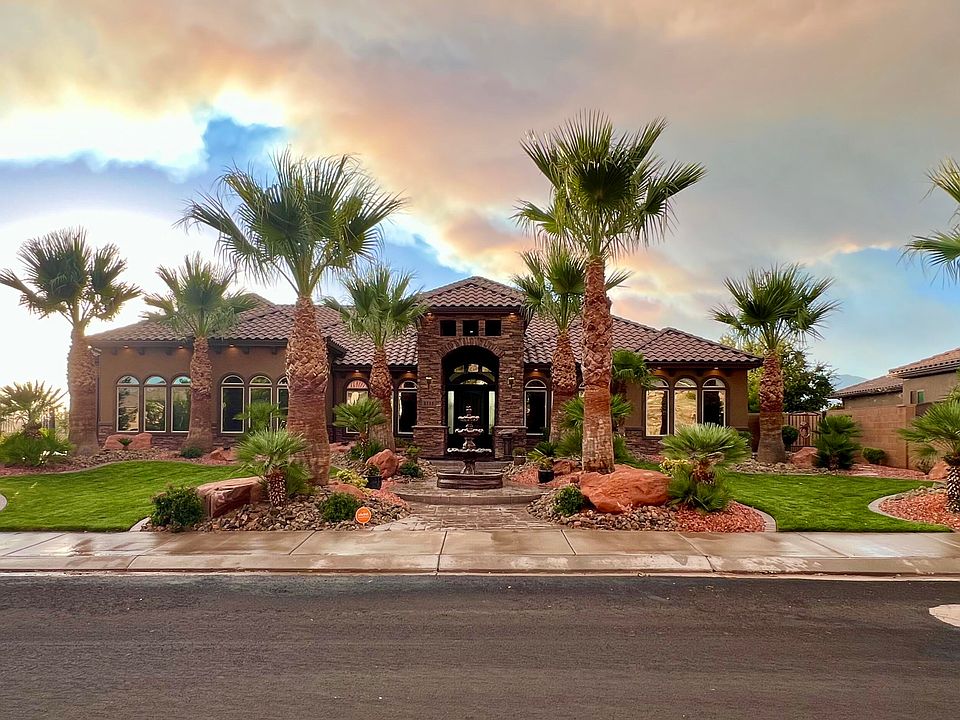 Rare opportunity to own your own slice of heaven in the exclusive Redstone Springs Community. This large home sits on over 3/4 acre and is a lavishly landscaped oasis. Unique to this property is shared access to a pressurized secondary water system for your irrigation needs as well as culinary water. This home includes an attached spacious 3-car garage and detached 3000 sf RV garage with 14-ft overhead doors, rear wash bay and 1/2 bathroom offering a total of 4250 sf of garage space.