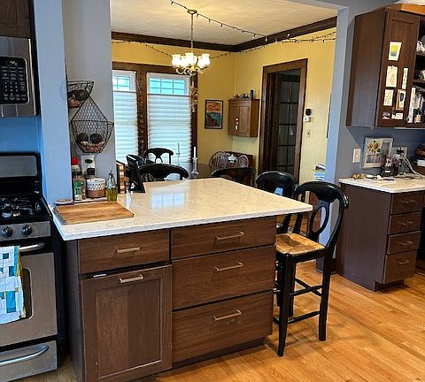 Lovely quiet street. Walking distance to UW-Madison, Monroe Street shops and restaurants, Edgewood College and school campus. A few blocks to the Wingra boat launch, capital bike trail. It has a gas fire place, built-in cabinets in the upstairs hallway, and lovely wooden doors. 4 bedrooms, with closet space, upstairs, a spacious living room, sunroom/office, and a newly renovated kitchen that opens to the dining room. The home also has a half-finished basement, and a back deck. There are multiple areas that can be utilized as an office, such as a sunroom on the main floor or one of the bedrooms upstairs. Closets are well lit with their own interior lighting and each bedroom has a ceiling fan. In addition, the upstairs hallway has a generous linen closet just outside of the bathroom. There is also a deep freezer in the garage that comes with the property. Central heating, air, humidity and air filter, new washer and dryer, updated kitchen, new windows, new insulation, solar panels, EV charge point, solar roof panels (covers most of your electric bill). Slate floor in entryway. Master: Fits a king bed with two closets Kids / Guests Rooms: Fit Full or Queens with closets Full bath on 2nd floor, full bath in finished basement. bath on main floor. 1-car attached garage with driveway Back yard fully fenced-in Tenant responsible for all utilities as well as lawn care, shoveling No smoking. Renter is responsible for utilities.