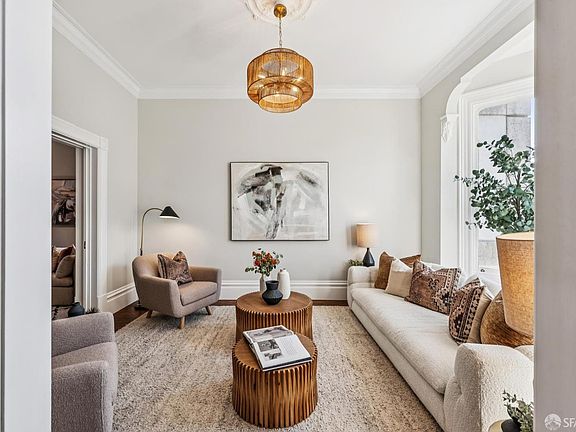 Owning a piece of SF History is easy here - one of the anchors of the Third Henry Hinkle Row in the Webster Street Landmark District, this home welcomes you through striking ornate double doors, and is replete with architectural details, but kitchen, baths, electricity and heating are all ready for modern life. The double parlor features a large bay window, pocket doors and a marble fireplace, which allow the inner room to be used flexibly as guest, library or family room. Flowing toward the rear of the home, a large formal dining room leads past a bath to the the grand eat-in kitchen (w/laundry) & access to a sun room style office with stairs to the private rear garden w/twinkly string lights & mature plants. Upstairs there are three large bedrooms and two renovated baths. The en-suite primary bath has hexagon glowing glass flooring, Carrera marble shower surround & elegant gold tone fixtures. The huge hall bath is elegantly appointed with an oversized double vanity, twin mirrors and herringbone patterned jade green flooring. Throughout the home new designer lighting and refinished Douglas fir floors bestow a warming glow. The amazing location is steps from Pacific Heights' exclusive boutiques, movie theaters, Mollie Stone's, and more restaurants than can be counted.