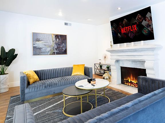 Stunning high end luxury Villa in the heart of Beverly Hills. This new fully remodeled modern house is a hidden beauty for guests & families who seek absolute privacy while being close to all attractions. Centrally located to all the best attractions, entertainment, restaurants and shopping! Beautiful professionally designed 4 bedroom, 5.5 bath Villa sleeps 11 & features a distinctive blend of modern style with Hollywood glamour. Amenities include a secluded private backyard with a heated pool, BBQ grill, outdoor fireplace and amazing garden. Alfresco dining/entertaining pavilion including a new high end Chicago pizza oven with full bar fronting expansive pool, and putting green all with remarkable seclusion. Free parking at the property. HOUSE HIGHLIGHTS 4 PRIVATE BEDROOMS AND 5.5 BATHROOMS FULLY REMODELED HOUSE WITH BRAND NEW FURNITURE LUXURY FURNISHINGS AND HOTEL COMFORT BEDDING INCLUDED IN ALL ROOMS 4 CAR PARKING AT THE HOUSE 6 BEDS THAT CAN SLEEP UP TO 11 PEOPLE MAX 5 HDTVS ONE HUGE 75 INCH HTDV IN LIVING AREA AND IN EVERY BEDROOM NETFLIX MOVIES INCLUDED FULL KITCHEN WITH EVERYTHING NEEDED TO COOK FOR LARGE FAMILIES/GROUPS LIVING ROOM SOFA FAUX FUR RUG DESIGNER CHAIRS FINE ART PRIVATE LAGRE, SPACIOUS OUTDOOR AREA WITH FIRE PIT AND BBQ GRILL LARGE DINING TABLE FOR 8 AND BAR STOOLS SMALL SEATING IN KITCHEN AND DINING AREA FOR ENTERTAINING HIGH SPEED INTERNET WIFI- THROUGHOUT HOUSE HOTEL COLLECTION ULTRA COMFY BEDDING IN ALL BEDROOMS EXTRA BLANKETS/PILLOWS WASHER AND DRYER KEYLESS ENTRY WITH DOOR CODE 7 DAY A WEEK ASSISTANCE FROM US DURING BUSINESS HOURS Minimum 1 month lease. Fully furnished.Utilities, internet, gardener, pool service are included.
