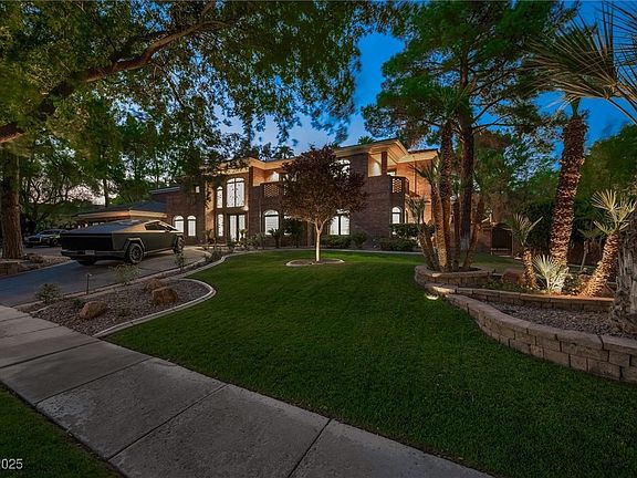 NEW PRICE: ELEVATED LIVING NOW AT AN ELEVATED OPPORTUNITY!!! Here's your chance to own Maxx Crosby's home from the LV Raiders. Exquisite Luxury Home in the prestigious guard-gated community of "The Fountains". Nestled on a half-acre lot, this remodeled estate offers 5 bedrooms, 5 baths & 3 versatile dens including a movie theatre, gym and office. The gourmet kitchen impresses with dual Sub-Zero refrigerators, 2 large islands, quartz countertops, dual dishwashers, walk-in pantry, and built-in Miele espresso station. The primary suite is its own private retreat with sitting room, bar with refrigerator & private balcony. There are 4 balconies thru/out the home. Lots of elegant details including graceful archways, formal dining room & decorative wine display. Outdoors...enjoy a resort-style backyard with a sparkling pool, full outdoor kitchen/bar, lighted basketball court & 2 covered patios. A circular driveway & 3 car garage complete this modern-day castle with timeless curb appeal.