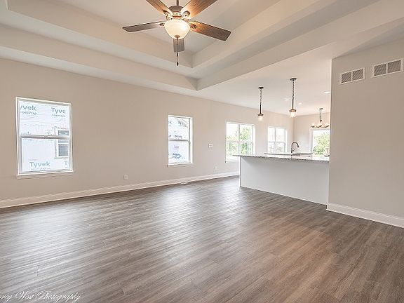 New Construction ~ Custom built, ranch, half duplex with open floor plan & lots of natural light. Spacious floor plan with 1571 square feet featuring 2 bedrooms, 2 full baths + den. 9' ceilings, over sized baseboard trim, panel doors, Quartz counter tops, luxury planked vinyl flooring, Wrought iron spindles & bronze finishes. The double tray ceiling in the family room creates a dramatic feeling upon entering this beautiful home! Owner's suite has 36" door openings & walk in closet. Eat in kitchen with island, breakfast bar, pantry closet, dovetailed soft close drawers & sliding doors to the deck. Full English basement with roughed in plumbing & Egress window allows for future expansion & great storage space. Nice yard space + convenient to the walking/bike path. Photos 2-15 reflect pictures from a previous build of this model. 1 yr. builder warranty.