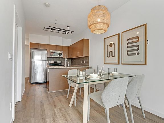 This bright and spacious 1 bedroom plus den home offers 635 sq. ft. of functional living space with an open layout designed for modern comfort. The den is perfect for a home office, and the large in-suite storage adds everyday convenience. Enjoy a modern kitchen with stainless steel appliances, in-suite laundry, and one secured parking stall. Fantastic location, just steps from Nanaimo SkyTrain Station, schools, parks, shopping, restaurants, and everyday.