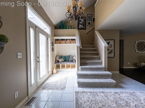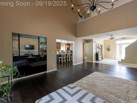 Welcome to your dream home in Shelby Township! This stunning 2-story contemporary offers nearly 2,800 sq. ft. of living space with 4 bedrooms, 3 full baths, and 2 half baths. Recent updates include beautiful new flooring throughout and upgraded windows, making this home move-in ready and in perfect condition. The spacious kitchen features granite countertops, custom white cabinetry, an oversized island, and a sunny breakfast area. The inviting living room showcases hardwood flooring, a stone fireplace, and plenty of natural light. The first-floor primary suite includes French doors leading to your private backyard, along with a spa-like bath featuring a jetted tub. The fully finished basement is an entertainer’s dream. Complete with a wet bar, egress window (2022), half bath, abundant storage, and a mix of plush carpet and elegant tile flooring. Outdoors, enjoy natural privacy fencing, a serene pond, and a paved walking trail nestled in the woods directly behind the property.