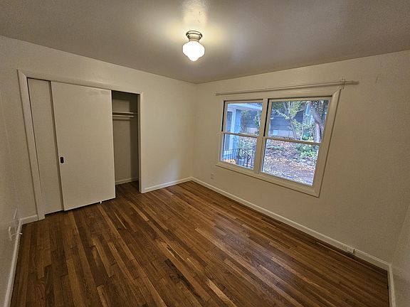 Hardwoods have been refinished. New floors in kitchen and bathroom. New stove, new refrigerator. Newer gas furnace. Quiet dead-end street with walking entrance to Mt. Tabor Park and playground. 12 month lease.
