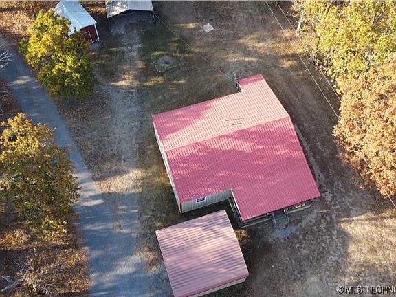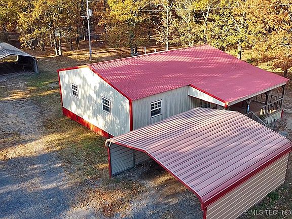This well-built 2-bedroom, 1-bathroom cabin, constructed in 2017, offers 1230 sq ft (per CH) of cozy living space with 2x6 exterior walls and a durable, low-maintenance metal exterior. Enjoy the peaceful countryside from the covered front porch, with fiber optic internet available to stay connected. The property includes a small pond and a fenced area perfect for goats, livestock, or chickens, along with several outbuildings to house animals or storage. A 30x40 barn/implement shed adds valuable space for equipment or livestock needs.