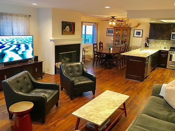 Ocean views, ocean breezes, 2 large bedrooms, 2.5 bathrooms, walk-in closets and 2 garaged parking spots steps from the sand, restaurants and shopping of downtown Manhattan Beach! The entire south and west sides of the home are open, so it has great views, light, salt-air breezes, and a sense of wide-open space and privacy. Very unique in the Manhattan Beach sand section. The home is two blocks from the beach and two blocks from the pier, shopping, grocery stores, and restaurants in downtown Manhattan Beach. The perfect distance to be near the action while still being peaceful. This is a big place at about 1,500 square feet. The top floor has an open-plan kitchen, living room (with fireplace), dining room, and private balcony. The kitchen has stainless appliances and granite counters. The balcony is perfect for a bbq. There is a nook that works as an office space and also a half-bath off of the living room. Downstairs are two bedrooms, each with their own massive walk-in closets and full bathrooms with Caesar stone counters and marble floors. One of the bedrooms also has a large balcony. There is also a private full-size washer and dryer. There are laminate wood floors throughout the entire home. The ground floor is the garage, which has two full-size tandem parking spots. Final touches are going on new paint and flooring (the bedrooms now have wood flooring instead of carpet). Owner pays for trash, water, and landscaping