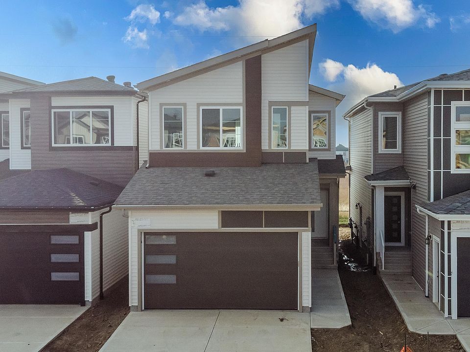 Located in the desirable and family-friendly Alces community, this Ferris model offers a spacious and functional layout with thoughtful upgrades throughout. You are welcomed by a grand open-to-above foyer and sleek tile flooring that enhances the modern aesthetic of the main level. The main floor includes a bright den with a large window, ideal for a home office, study, or flex space, along with a full bathroom featuring a standing shower. The chef-inspired kitchen extends into the dining area and includes a spice kitchen with added storage and prep space. The great room boasts a built-in fireplace, creating a warm setting for everyday living and entertaining. Upstairs, you’ll find three spacious bedrooms, including a primary suite with a five-piece ensuite offering dual sinks, a soaker tub, tiled shower, and walk-in closet. A custom accent wall adds character, while a bonus room and upper-level laundry enhance functionality. A side entrance to the basement provides potential for future development.