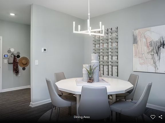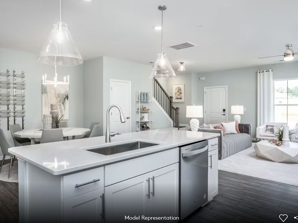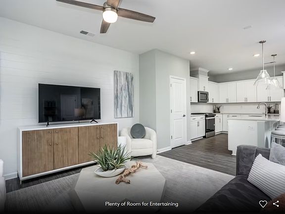 Open Floor plan with large Kitchen having quartz counter tops and tile back splash, pendant lights with separate dining area.